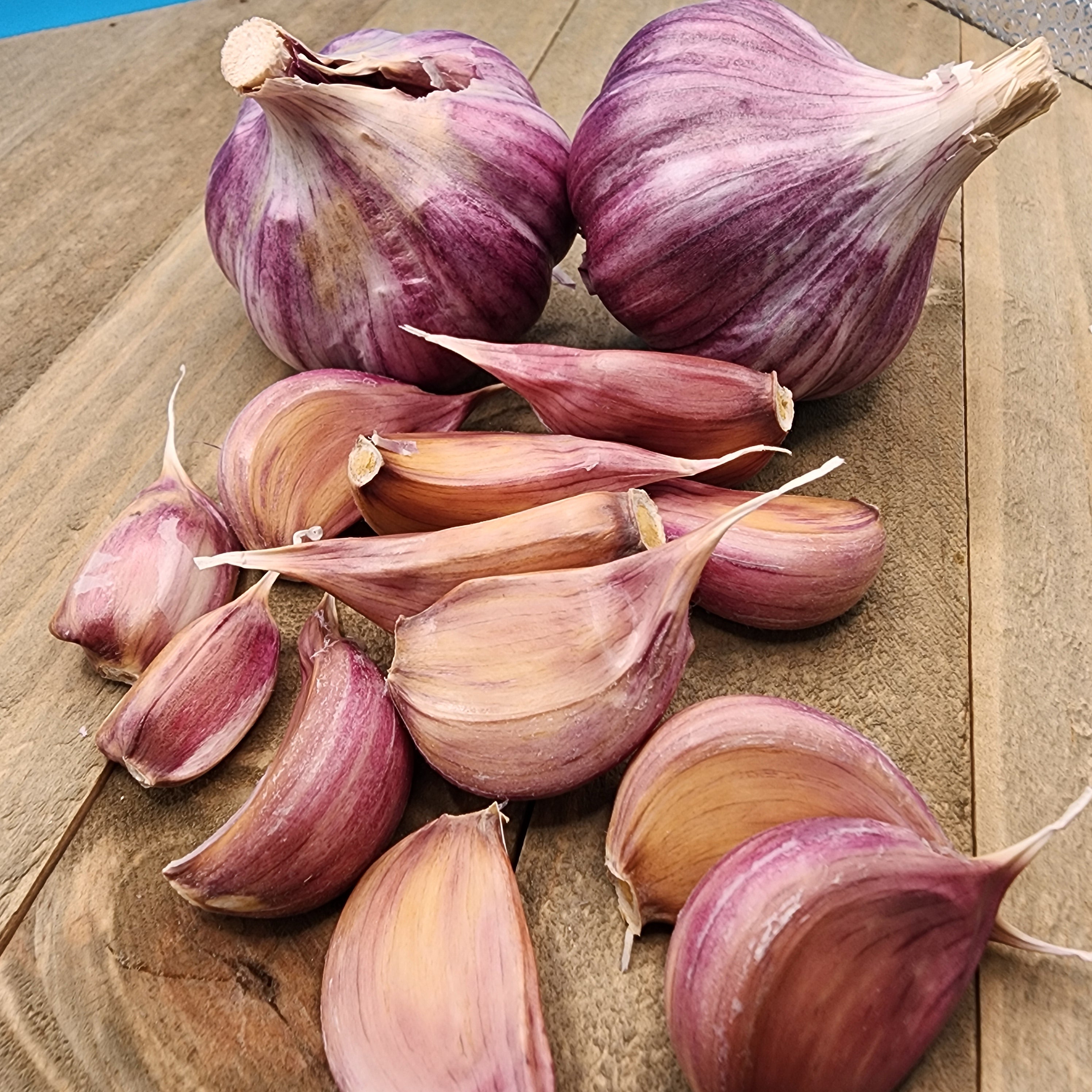 Gourmet garlic famous for flavor! Light purple streaks on 7-13 easy-to-peel cloves. Suited to colder climates. May not yield well where winters are too mild. Very popular with market gardeners and restaurants. Brought to the Northwest before 1900; often called “Greek Blue”.