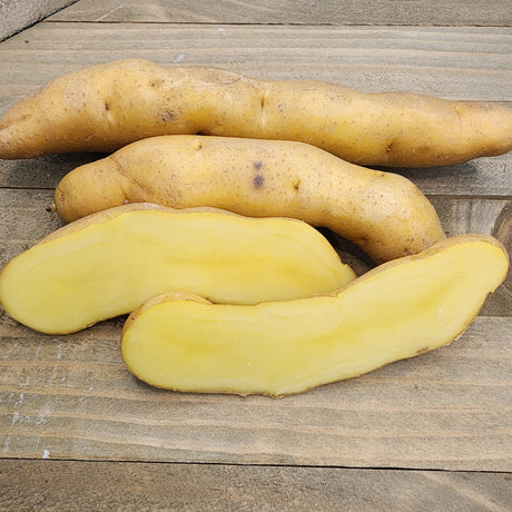 • This fingerling is gourmet quality with smooth skin and yellow flesh.